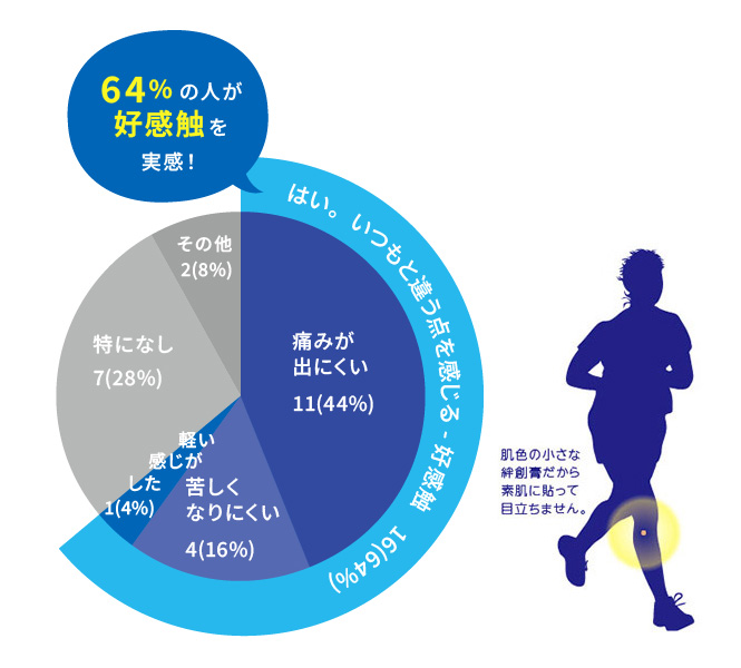 スタート地点でソマレゾンLを足三里に貼付し、ゴール後にアンケートを実施し集計(25名)