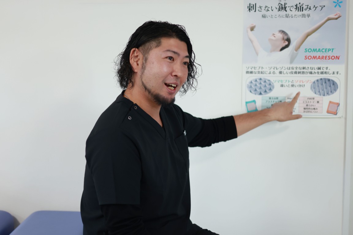 患者さんにとっては、信頼している施術家が貼付することで、ソマニクスの効果を最大限引き出せると思っていますので、患者さんに常に寄り添う姿勢を心がけ、身体の不調時に真っ先に思い出していただける存在であることを目指しています。