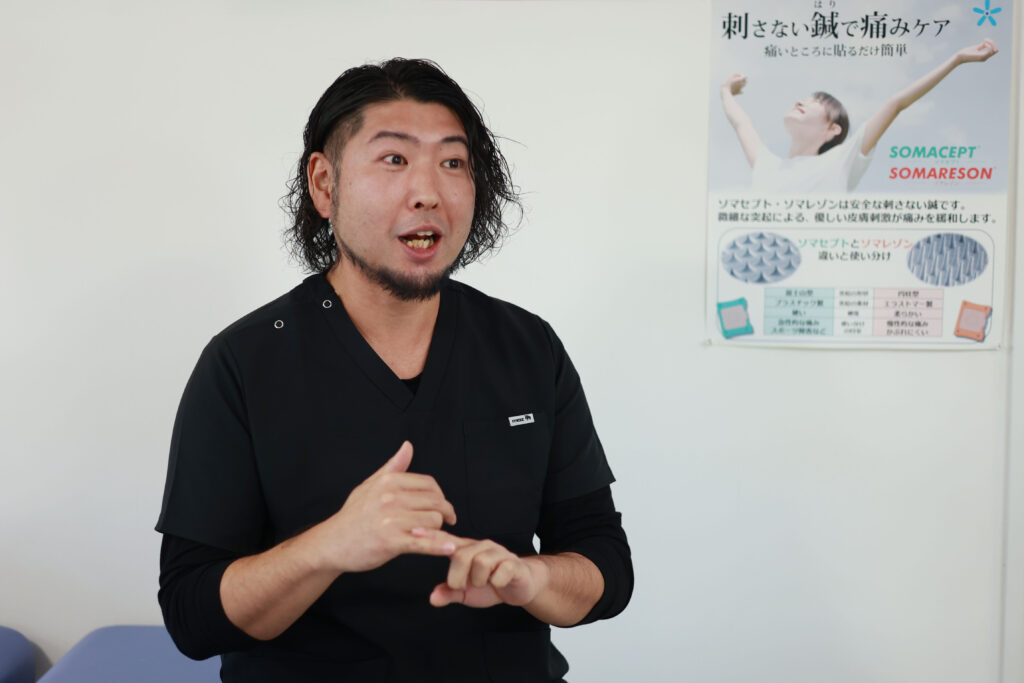 現在は、手技・物療で痛みが取り切れない患者さんに使うことが多いです。感覚的には3割くらいの患者さんで、痛みが取り切れないのですが、ソマニクスを導入したことで、この3割の患者さんにもご満足いただけるようになりました。