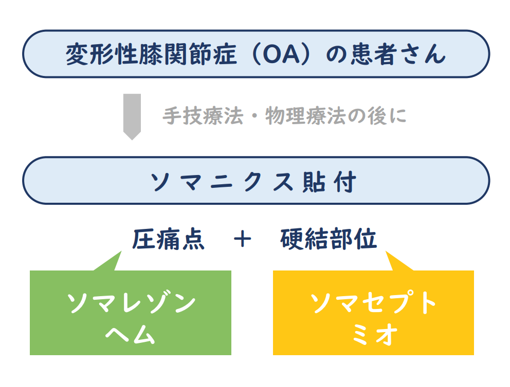 変形性膝関節症(OA)の痛みに対しては、再現性高くソマニクスの効果が出るよなと感じています。