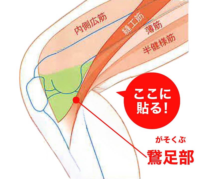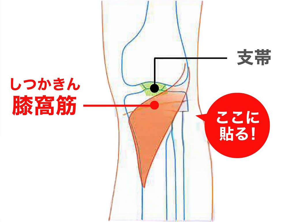 膝窩筋の圧痛を確認し特に痛む箇所にソマセプト ミオを貼ります。