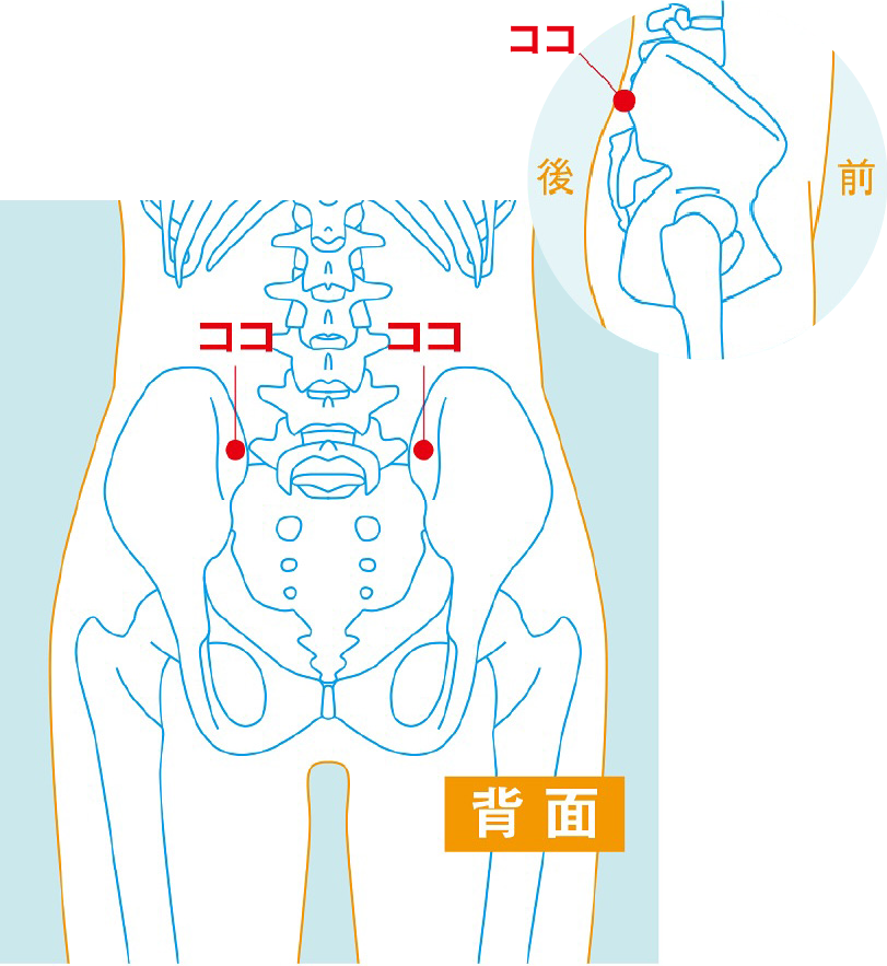 上後腸骨棘は、お尻の反り終わり辺りにコリッと出ている2つの骨
